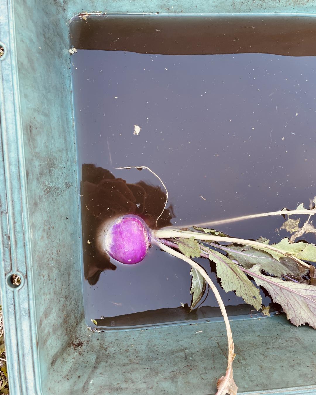 自然を感じながら、水のなかの野菜たちに意識を集中させて、土を落としていきます。