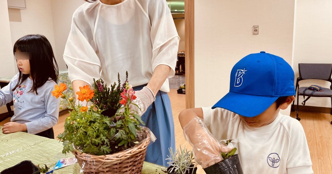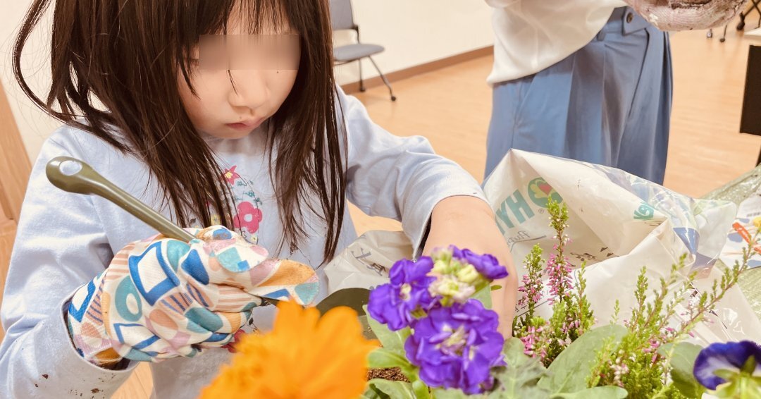 秋の寄せ植えワークショップでは、親子が一緒に土に触れ、植物のいのちを感じる時間を共有しました。