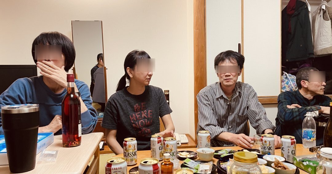 講座の後は、それぞれが持ち寄ったお酒とおつまみで部屋飲みです。オンラインとはいえ普段から苦楽を共にしている仲間たちですから、話題は尽きません。結局、夜中の3時近くまで、人生のこと、これからの暮らしのことを語り明かしました。