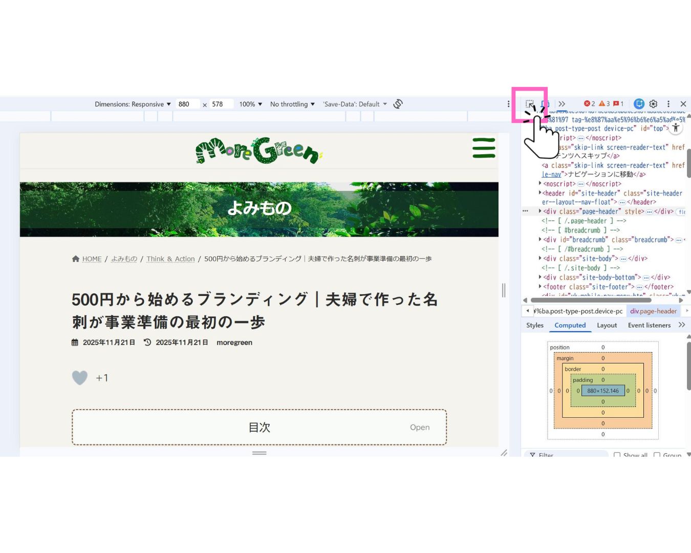 - サイトの内部構造(HTML / CSS)をリアルタイムで確認できる