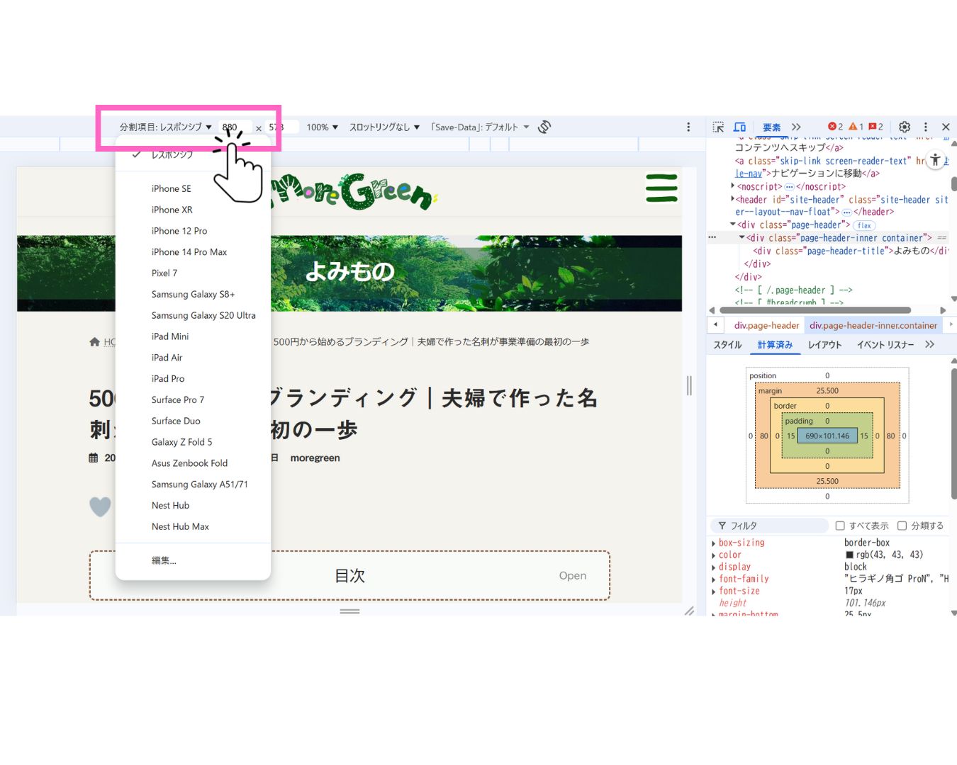 - スマホ表示の挙動も再現できる(エミュレータ機能)