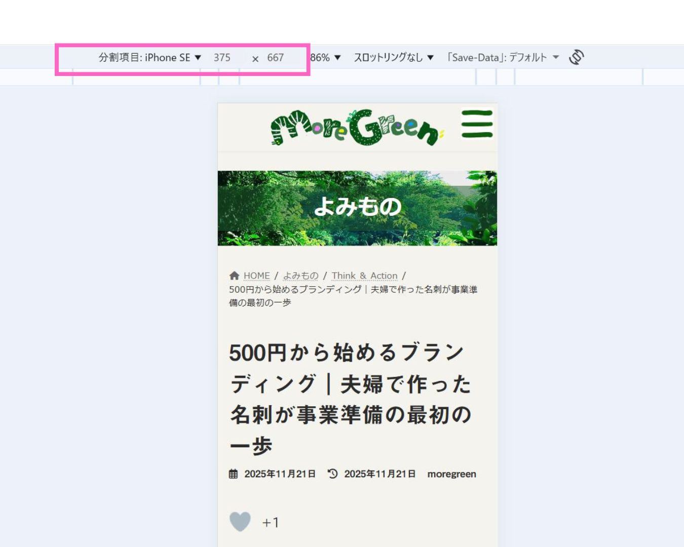 ブラウザ上でスマホで崩れていないか、タップしやすいかなどもチェック可能。
