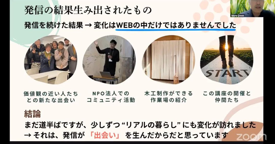 受講生の声: 「脱デジタルをしようとして一旦離れてから改めてその面白さを発見した、だからこその今の発信に繋がっている、という背景がとても興味深かったです。ずっともやもやしていた部分が思いがけずスッキリして受講して良かったと思いました!」