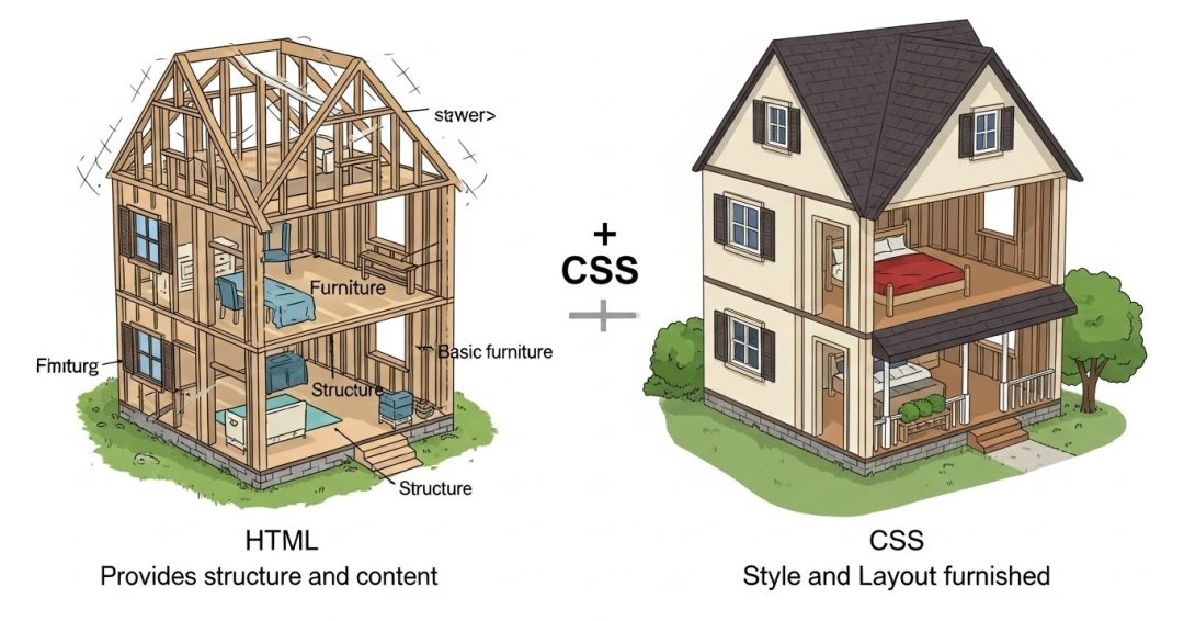 ここに玄関があって、ここにリビングがあって、ここに窓がある……という「構造」を決めるのがHTMLの役割です。 大工さんが柱を立てるように、「ここは見出し」「ここは本文」「ここは画像」と、情報の配置を決めていきます。これがないと、Webサイトは形を成しません。 - CSS(シーエスエス)は「内装・インテリア」